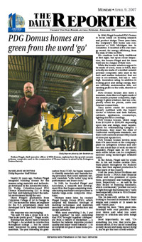"PDG Domus homes are green from the word 'go', The Daily Reporter, April 9, 2007
